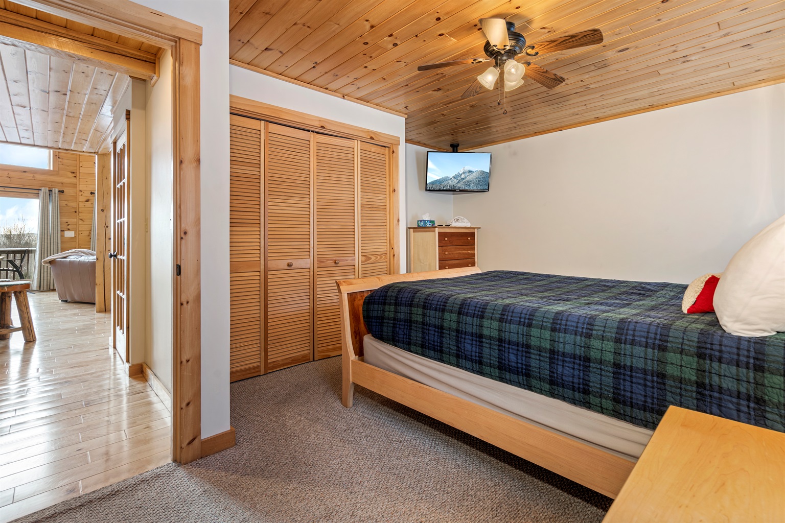 On the primary floor, the Master bedroom offers a queen bed, an HD streaming TV for your entertainment, and an ensuite full bathroom with a relaxing bathtub. A pack 'n play is available in the closet for the little ones.
