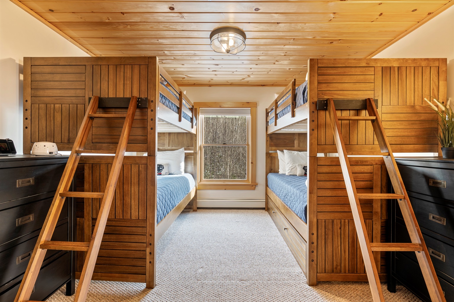 This property boasts a total of 4 bedrooms. On the second floor, you'll find two inviting bedrooms: a cozy Queen bedroom with a queen-size bed and a fun kids' room featuring two twin bunk beds and one has a pull-out twin bed. There's also a convenient workstation for your use.