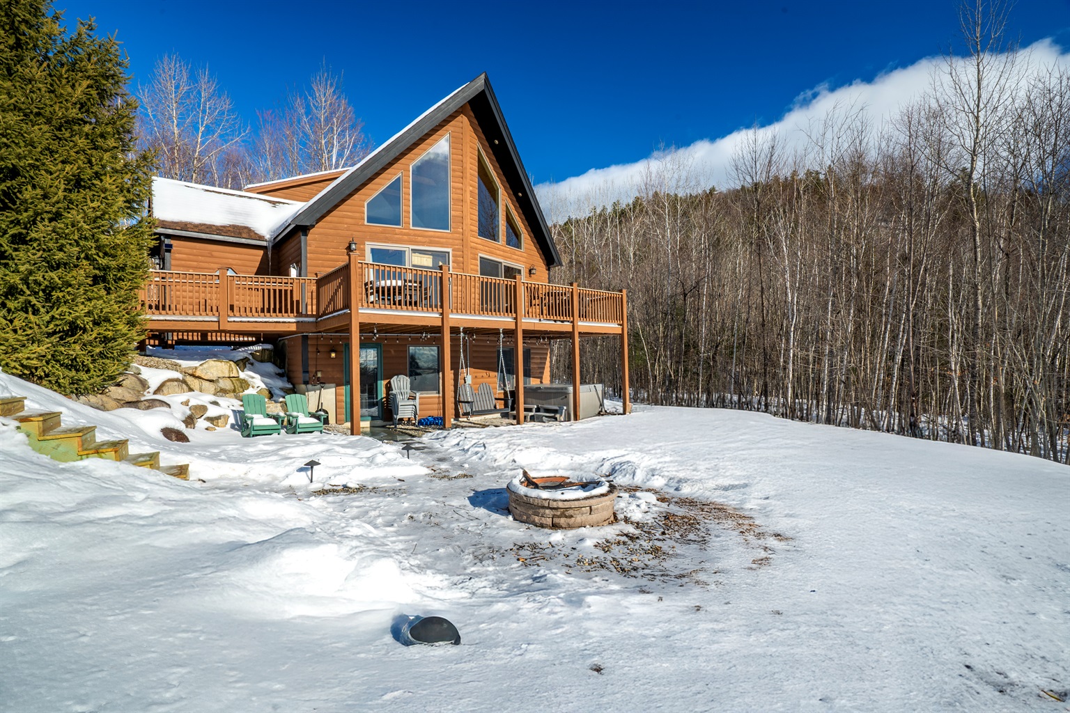From the primary level, step out onto the deck and immerse yourself in the breathtaking views. Whether you're cooking up a special meal on the gas grill or unwinding in the basement hot tub to rejuvenate your mind and body, you'll be surrounded by unparalleled beauty. Take in the stunning scenery while soaking in the hot tub or gathering around the fire pit. There's ample parking space for 7-8 cars, ensuring convenience for all guests.